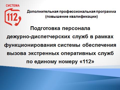 «ПОДГОТОВКА ПЕРСОНАЛА ДЕЖУРНО-ДИСПЕТЧЕРСКИХ СЛУЖБ В РАМКАХ ФУНКЦИОНИРОВАНИЯ СИСТЕМЫ ОБЕСПЕЧЕНИЯ ВЫЗОВА ЭКСТРЕННЫХ ОПЕРАТИВНЫХ СЛУЖБ ПО ЕДИНОМУ НОМЕРУ «112»»
