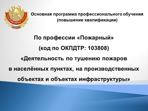 ПО ПРОФЕССИИ «ПОЖАРНЫЙ» (КОД ПО ОКПДТР: 103808)